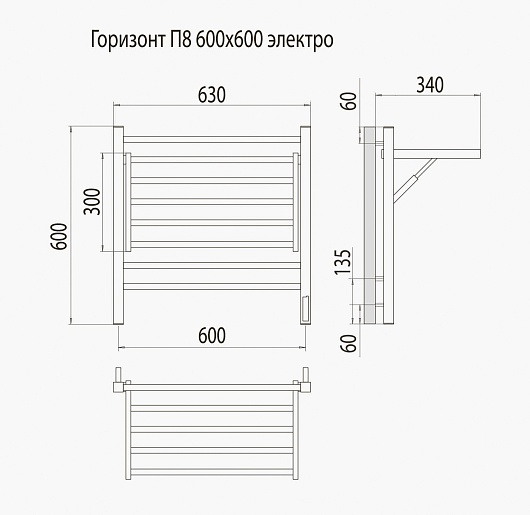 Полотенцесушитель электрический Terminus Горизонт П8 600x600 - арт. 4670078543523.