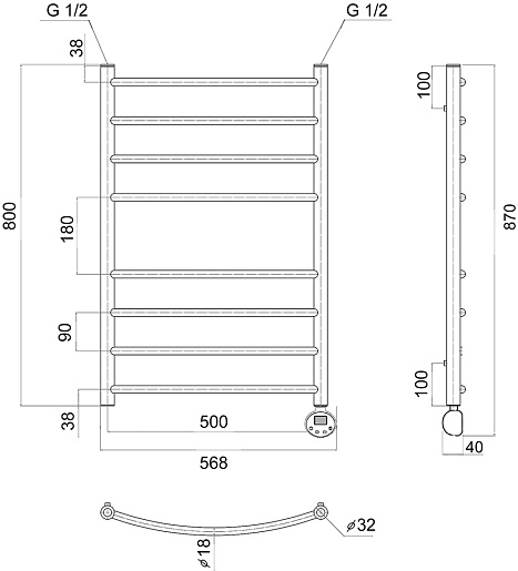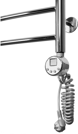 Комплектация: полотенцесушитель с ТЭНом в сборе, кронштейн (4 шт.), кран Маевского, заглушка, терморегулятор, провод с вилкой.