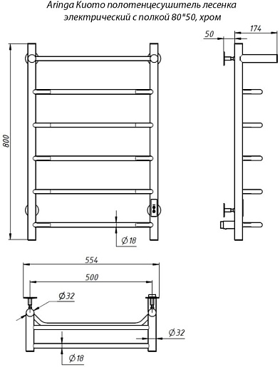 Aringa Полотенцесушитель электрический Киото 80x50 AR03001CH с полкой хром