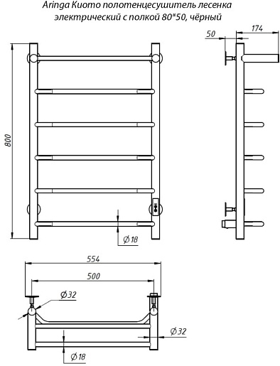 Aringa Полотенцесушитель электрический Киото 80x50 AR03005BL черный