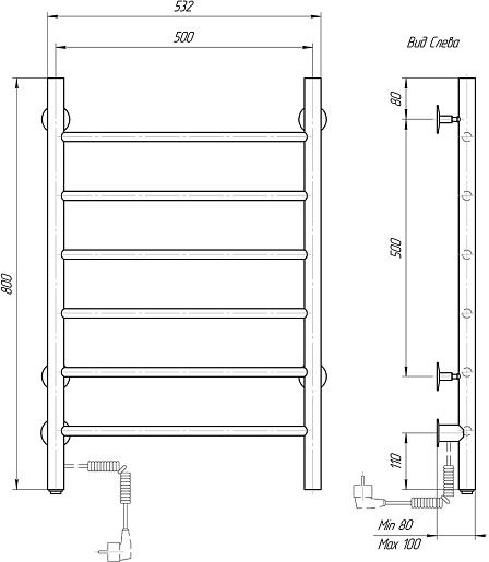 Domoterm Полотенцесушитель электрический Классик DMT 109-6 50x80 ЧРН EK L черный