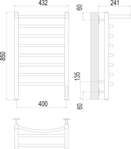 Полотенцесушитель электрический Terminus Классик П8 400x850 с полкой - арт. 4670078531407.