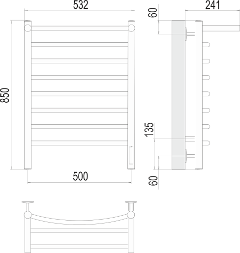 Полотенцесушитель электрический Terminus Классик П8 500x850 с полкой - арт. 4670078531414.
