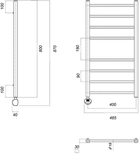 Комплектация: полотенцесушитель с ТЭНом в сборе, кронштейн (4 шт.), кран Маевского, заглушка, терморегулятор, провод с вилкой.