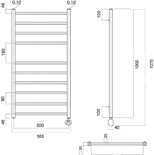 Комплектация: полотенцесушитель с ТЭНом в сборе, кронштейн (4 шт.), кран Маевского, заглушка, терморегулятор, провод с вилкой.