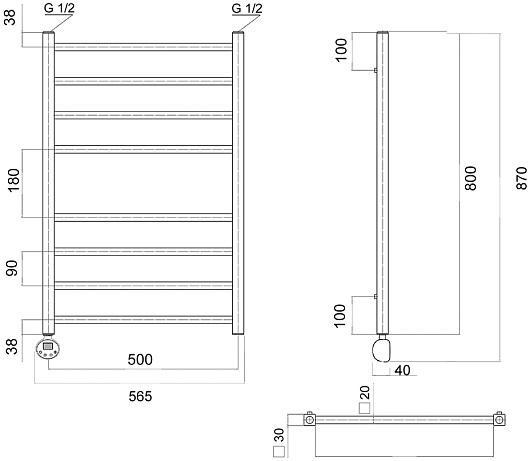 Комплектация: полотенцесушитель с ТЭНом в сборе, кронштейн (4 шт.), кран Маевского, заглушка, терморегулятор, провод с вилкой.
