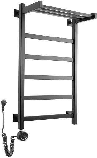 Электрический полотенцесушитель Domoterm Квадро Плюс П6 500x800 EL с полкой черный.