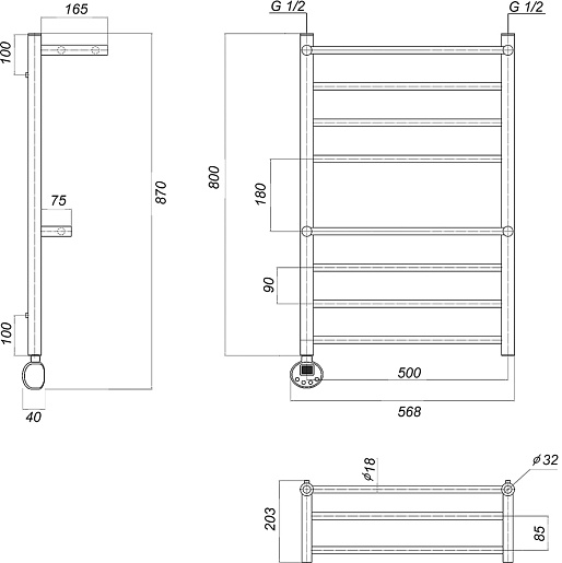 Domoterm Полотенцесушитель электрический Медея СП2 П8 500x800 EL хром