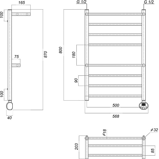 Domoterm Полотенцесушитель электрический Медея СП2 П8 500x800 ER хром