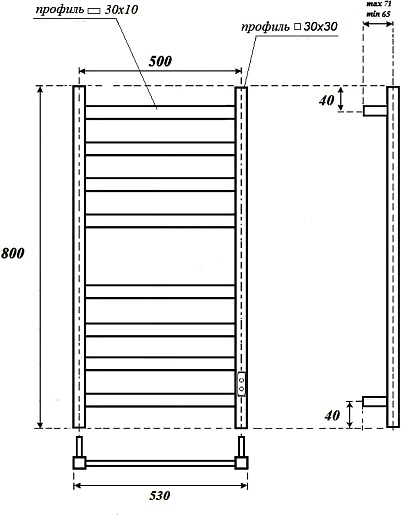 Комплектация: полотенцесушитель, крепление к стене (3 шт.), сетевой кабель.