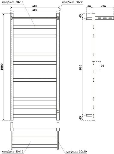 Комплектация: полотенцесушитель, крепление к стене (3 шт.), сетевой кабель.