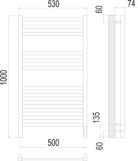 Полотенцесушитель электрический Terminus Ното П12 500x1000 - арт. 4670078526519.