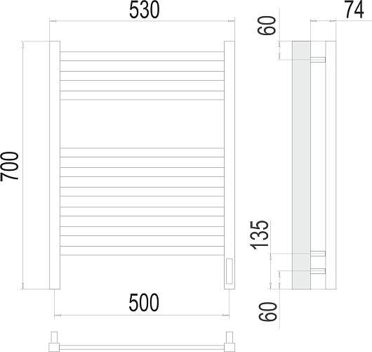 Полотенцесушитель электрический Terminus Ното П9 500x700 - арт. 4670078526960.