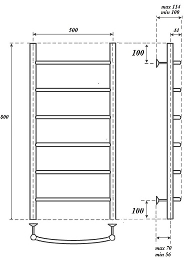 Комплектация: полотенцесушитель, крепление к стене (4 шт.), ТЭН с терморегулятором.
