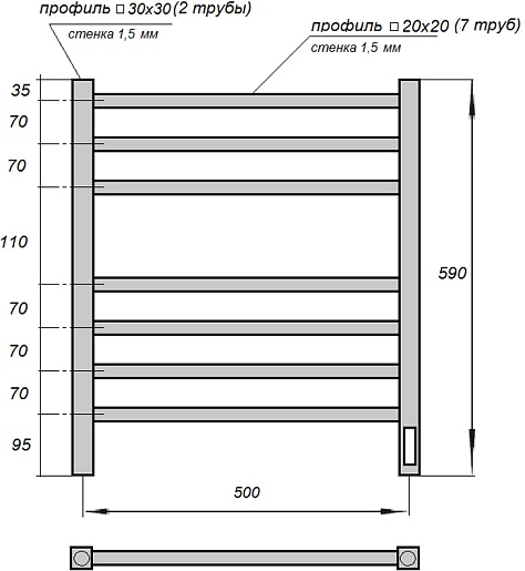 Комплектация: полотенцесушитель, телескопическое крепление к стене (4 шт.), сетевой кабель.