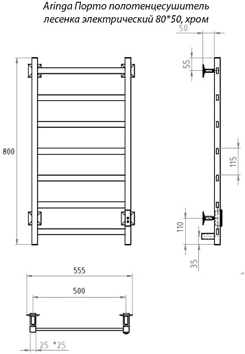 Полотенцесушитель электрический Aringa Порто 50x80 AR03011CH хром.