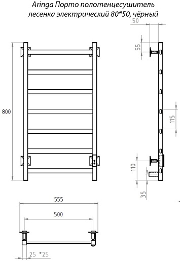 Полотенцесушитель электрический Aringa Порто 50x80 AR03012BL черный.