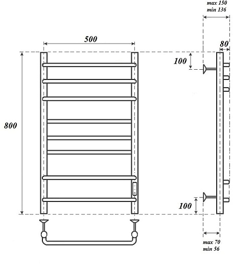 Комплектация: полотенцесушитель, крепление к стене (3 шт.), сетевой кабель.