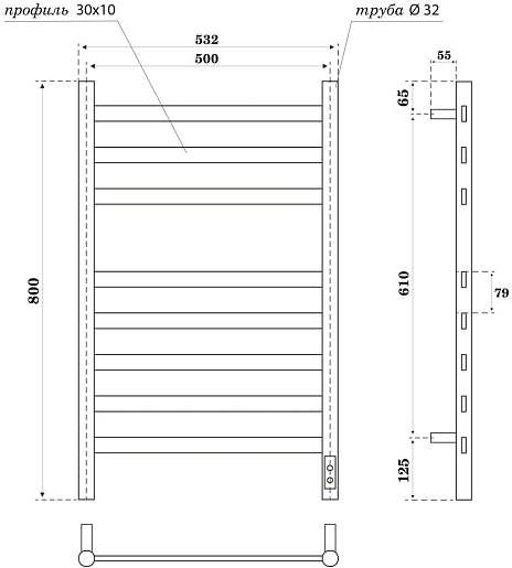 Полотенцесушитель электрический Point Феникс П8 500x800 PN16858B черный.