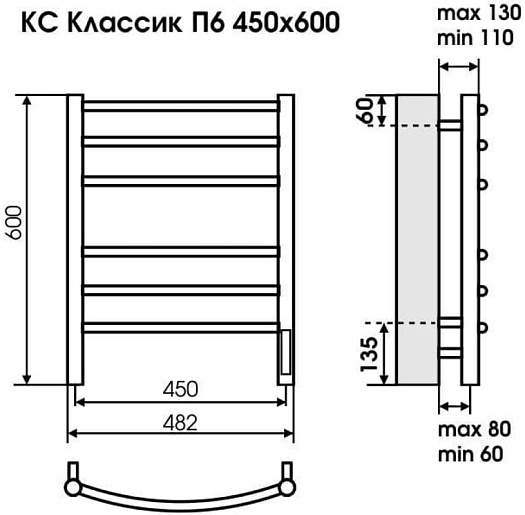 Полотенцесушитель электрический Terminus Сицилия П6 450x600 - арт. 4670078543004.