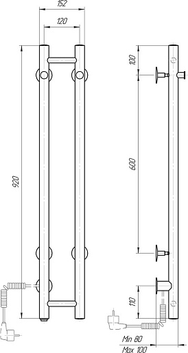 Комплектация: полотенцесушитель, кронштейн (4 шт.), комплект для скрытого подключения, провод с вилкой.