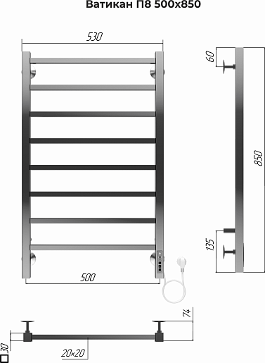 Полотенцесушитель электрический Terminus Ватикан П8 500x850 - арт. 4670078544452.