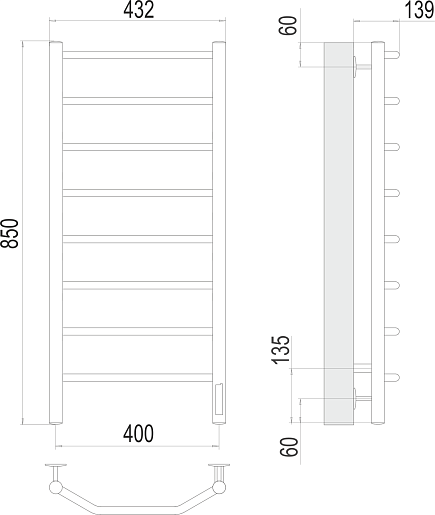 Полотенцесушитель электрический Terminus Виктория П8 400x850 - арт. 4670078531209.