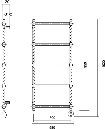 Электрический полотенцесушитель Domoterm Винтаж П5 500x950 АБР ER.