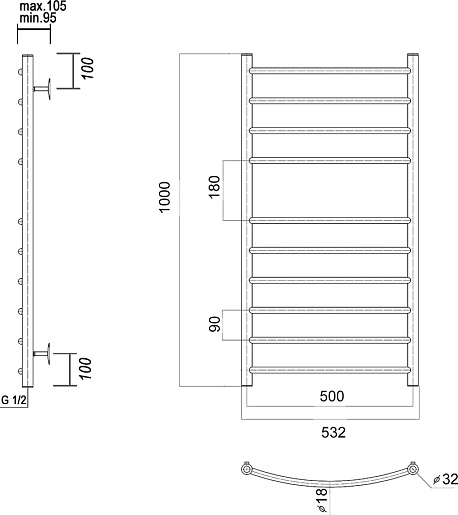 Полотенцесушитель Domoterm Калипсо П10 500x1000.