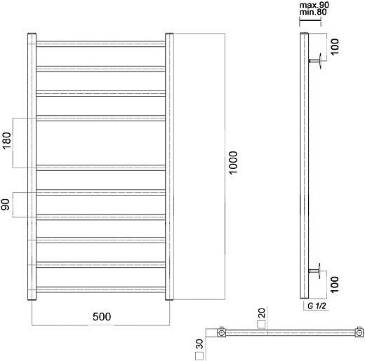 Полотенцесушитель Domoterm Квадро П10 500x1000.
