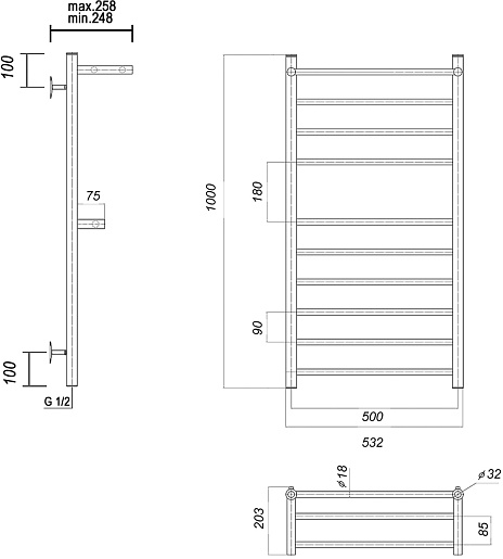 Полотенцесушитель Domoterm Медея СП2 П10 500x1000.