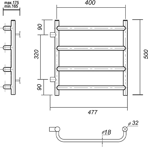 - Диаметр боковых труб: 32 мм.