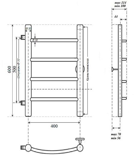 Комплектация: полотенцесушитель, крепление к стене (1 шт.), кран Маевского.