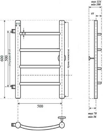 Комплектация: полотенцесушитель, крепление к стене (1 шт.), кран Маевского.