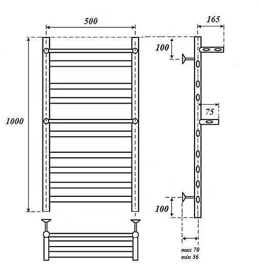 Комплектация: полотенцесушитель, крепление к стене, кран Маевского.
