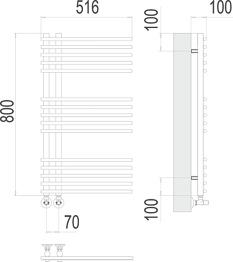 Комплектация: полотенцесушитель, вентиль квадратный 3/4x1/2 ГШ (2 шт.), эксцентрик 3/4x1/2 (2 шт.), отражатель 3/4 (2 шт.), крепеж.