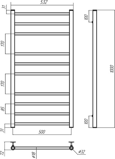 Полотенцесушитель водяной Terminus Аврора П10 500x1000 хром - арт. 4670078543899.
