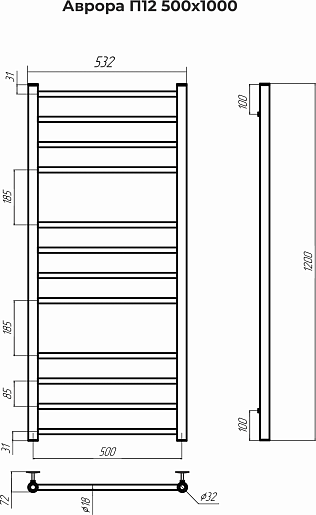 Terminus Полотенцесушитель водяной Аврора П12 500x1200 хром