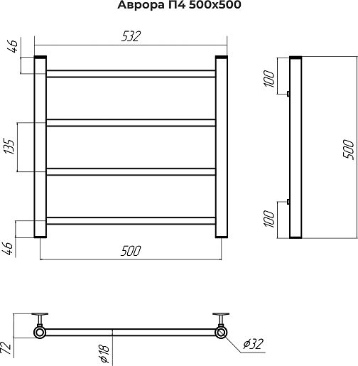 Полотенцесушитель водяной Terminus Аврора П4 500x500 хром - арт. 4670078543967.