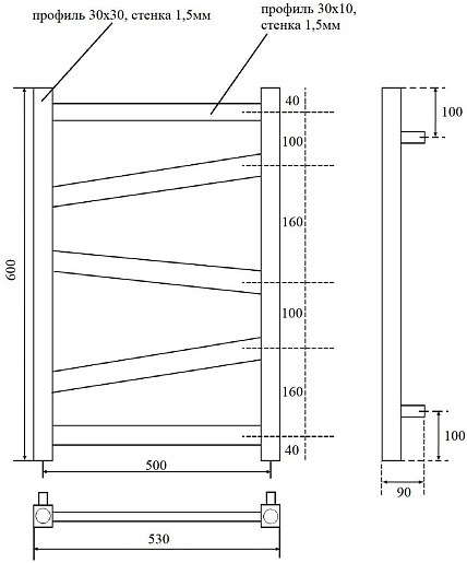 Полотенцесушитель водяной Point Феникс П5 500x600 PN15156B черный.