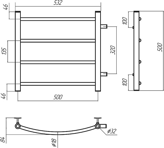 Комплектация: полотенцесушитель, крепеж.