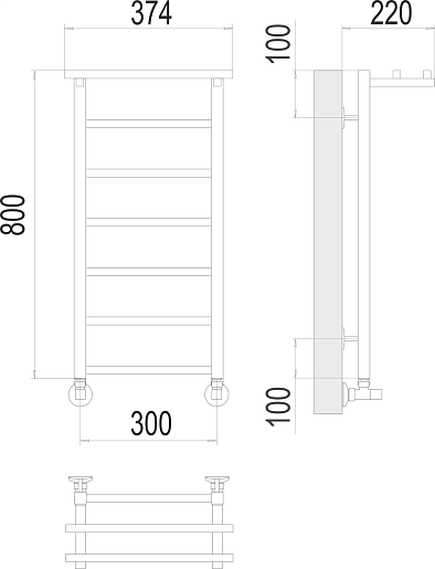 Комплектация: полотенцесушитель, уголок со сгоном 3/4х1/2 Г/Ш (2 шт.), эксцентрик (2 шт.), отражатель (2 штуки), крепеж.