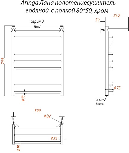 Aringa Полотенцесушитель водяной Лана 80x50 AR03027CH с полкой хром