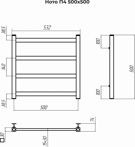 Полотенцесушитель водяной Terminus Ното П4 500x500 хром - арт. 4670078544315.