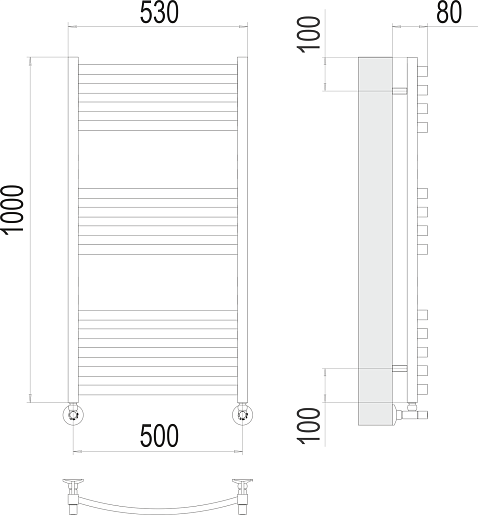 Комплектация: полотенцесушитель, вентиль угловой квадратный 3/4x1/2 ГШ (2 шт.), эксцентрик (2 шт.), отражатель (2 шт.), крепеж.