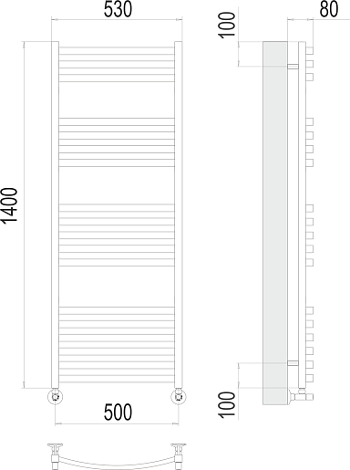 Комплектация: полотенцесушитель, вентиль угловой квадратный 3/4x1/2 ГШ (2 шт.), эксцентрик (2 шт.), отражатель (2 шт.), крепеж.