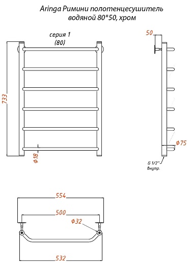 Полотенцесушитель водяной Aringa Римини 50x80 AR03023CH хром.
