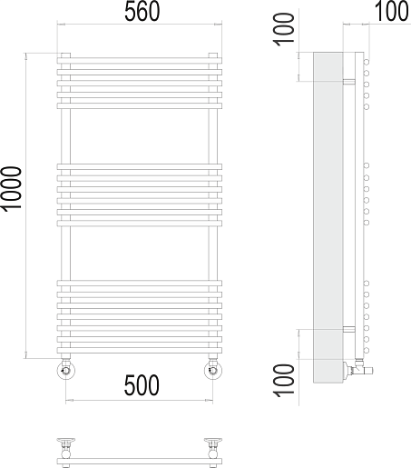 Комплектация: полотенцесушитель, вентиль 3/4x1/2 ГШ (2 шт.), эксцентрик 3/4x1/2 (2 шт.), отражатель 3/4 (2 шт.), крепеж.