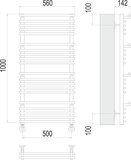 Комплектация: полотенцесушитель, уголок со сгоном 3/4х1/2 Г/Ш (2 шт.), эксцентрик (2 шт.), отражатель (2 штуки), крепеж.