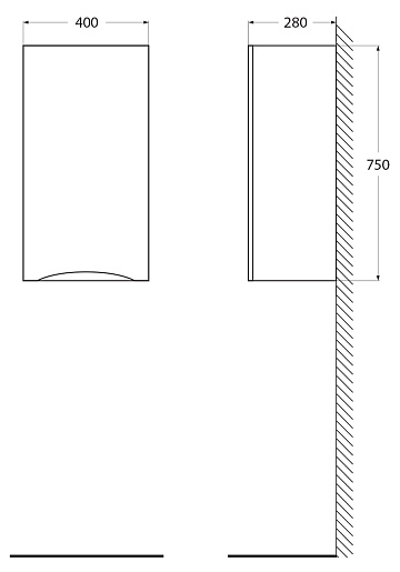 BelBagno Полу-пенал для ванной Fly-Marino 40/75 L Bianco Lucido